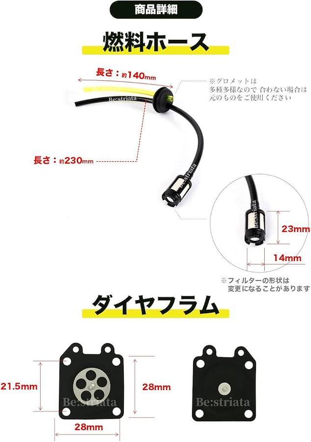 そんなことが無いように、セット品を購入したほうが作業がスムーズに進みますよ。ハツタ刈払機のエンジン(TL231) カワサキ草刈り機TJ27 STIHLl FS2301 リョービEKK-26 マキタ MEM202S RYOBI EKK26 ゼノアBC2610 マキタ MEM201S マキタのmem2300u マキタの古い刈払い機MEM201 リョービ刈り払い機EKK2600 リョービ刈り払い機EKK2620 マキタMEM2100U リョービEKK2620に付く様な話も有りましたが私のEKK2620にはそのままでは付きませんでした T26エンジンに取り付けましたカーツ刈払い機 RYOBI EKKB-26 川崎TJ27草刈り機 丸山BC26M ハイコーキ(旧日立工機)製25,5cc タナカ CB-23HTS RYOBI EKKー2600 ロビンNB231 リョービ EKK-220LA マキタ4サイクル草刈り機 MEM427 25cc ガソリン用には 向きが逆で 使用できませんでした ロビンNB232 丸山のCBC230 キョウリツSRM230P Ranee(ラーニ―) EC026G などに 互換品です。