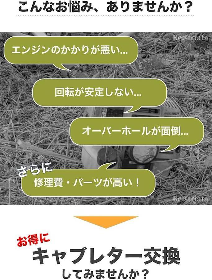 ・ゼノア・共立・新ダイワ・丸山・マキタ・カーツ・本田・リョービ・タナカ・新宮 等の草刈機・ブロアー・チェーンソー・耕運機などのキャブレターの互換品にはなりますが、あくまで互換品です。