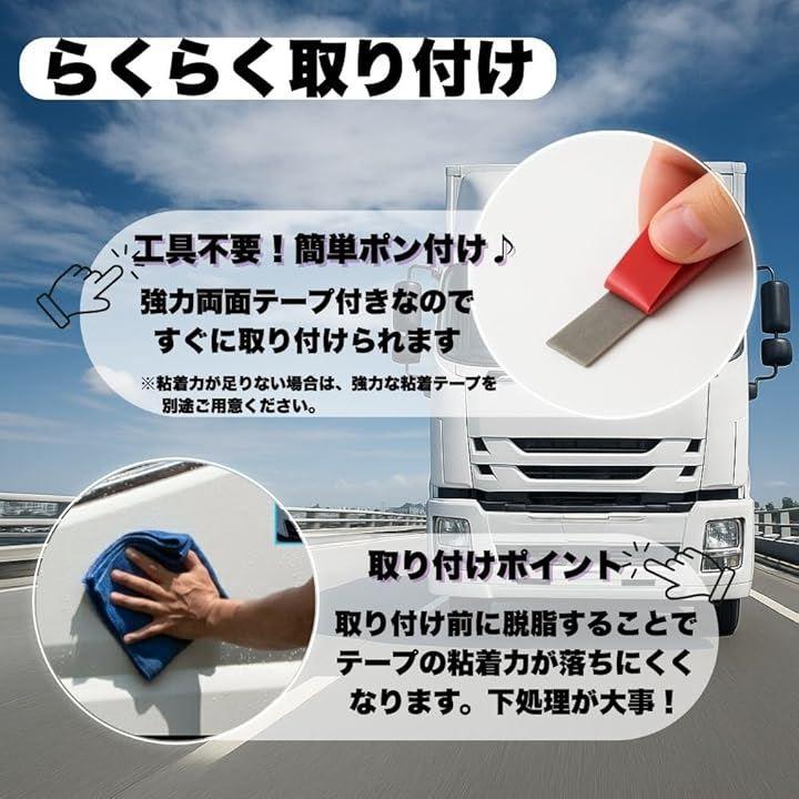 取付後は粘着が完全に定着するまで洗車や走行をお控えください。