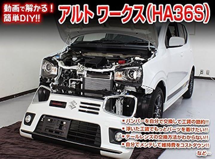 アルト ワークス (HA36S) DVD 収録内容:*外装関連 01.フロントバンパー取り外し方法 02.リアバンパー取り外し方法 03.ヘッドライトユニット取り外し方法* 04.テールライトユニット(リアランプ類)取り外し方法* 05.ヘッドライトランプ(ロー・ハイ)取り外し方法* 06.フロントポジションランプ取り外し方法* 07.フロントウィンカーランプ取り外し方法* 08.フロントフォグランプ取り外し方法* 09.ハイマウントストップランプ取り外し方法* 10.サイドミラー取り外し方法* 11.ホーン取り外し方法* 12.ワイパー(ゴム・ブレード)取り外し方法* 13.エアクリフィルター取り外し方法* 14.ライセンスランプ取り外し方法* 15.ヒューズ取り外し方法* 16.バッテリーマイナス端子絶縁方法* 17.バッテリー取り外し方法*