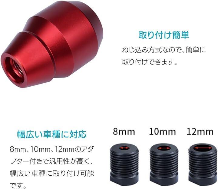 8mm、10mm、12mmのアダプター付きで汎用性が高く、幅広い車種に取り付け可能です。