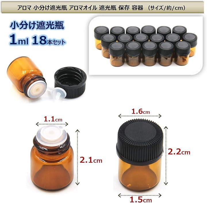 「サイズ/約/mm」1ml:22x15, 2ml:28x15, 3ml:35x15, 5ml:48x15「材質」 耐熱ガラス(ホウケイ酸ガラス)、AS樹脂、SI(シリコンゴム)「付属」ボトルオープナー