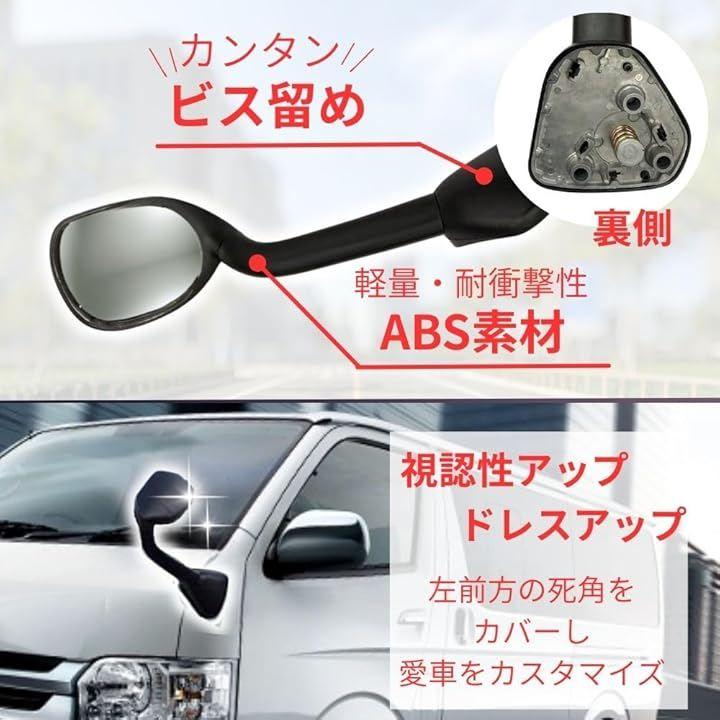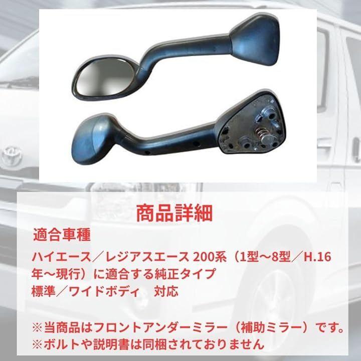 「幅広い適合範囲」ハイエース/レジアスエース200系(1型~8型/平成16年~現行モデル)専用設計の補助ミラー。
