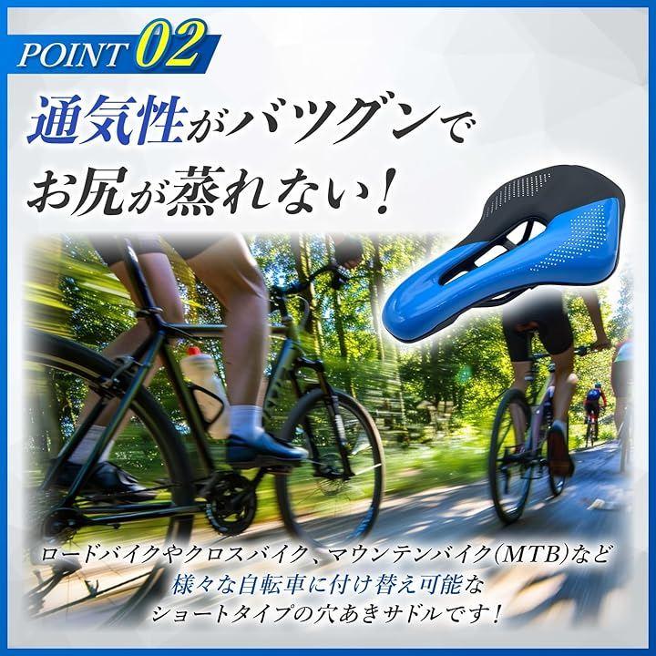 ロードバイクやクロスバイク、マウンテンバイク(MTB)など様々な自転車に付け替え可能なショートタイプの穴あきサドルです。