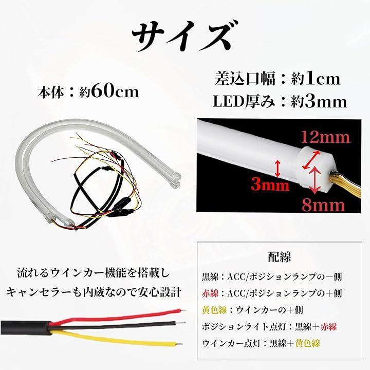 装着可能性の広がり:LEDはわずか3mmの厚みで、狭い隙間にもスムーズに取り付け可能なウインカー LED テープです。