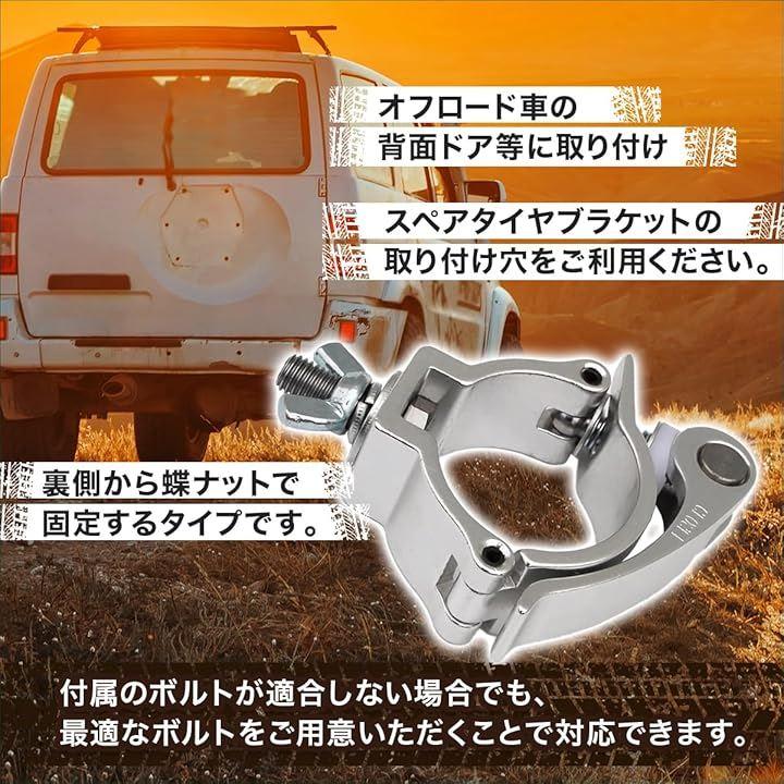 使い方簡単。クランプツールの凹にビスやボルトで壁面やリアハッチの内側などお好きな場所に取り付けるだけ。