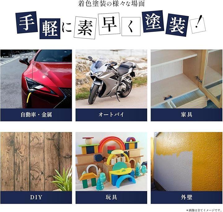 使用例:テーブルや椅子、自転車、シャッター、フェンス、自動車部品、家電部品、スチール製家具、木製のおもちゃ、壁画、車の絵画など。