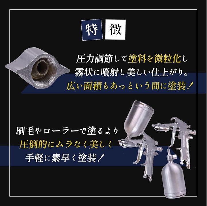 「広い汎用性」このエアースプレーガンは、自動車やオートバイの修理、家庭用家具の修理、DIY、プラスチック塗装、木工塗装、アート作品の作成まで、幅広い用途に対応します。
