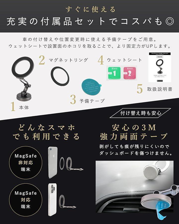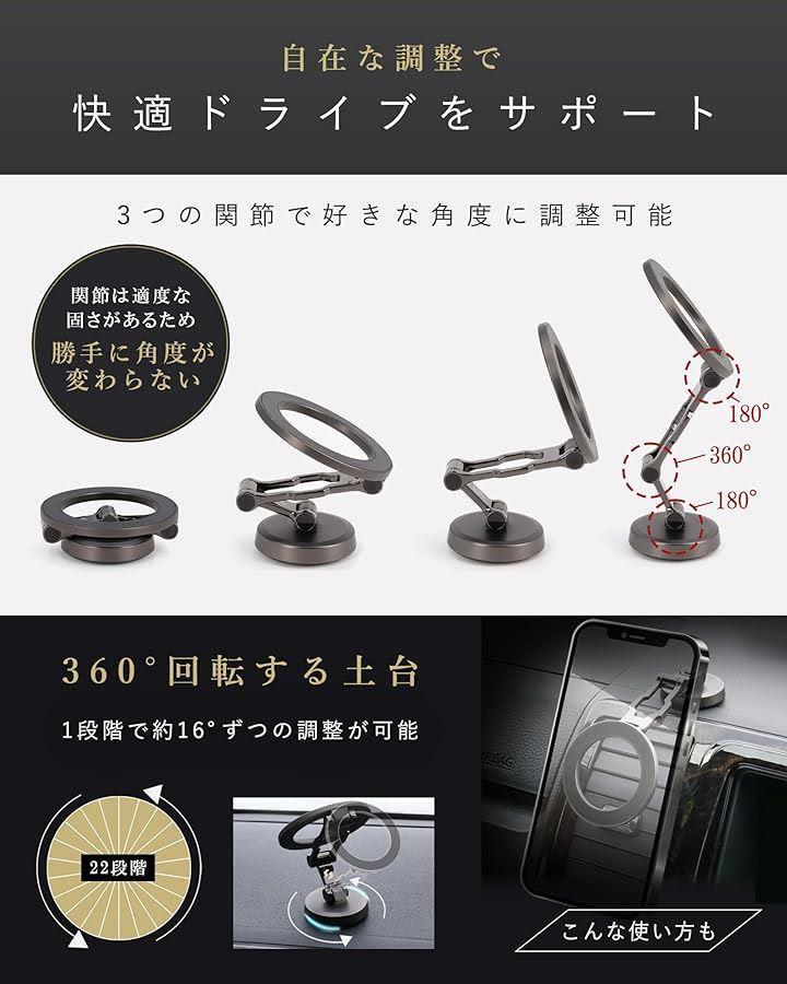 「最適な磁気バランス」強力なN52ネオジムマグネットで、スマホを安全に保持。