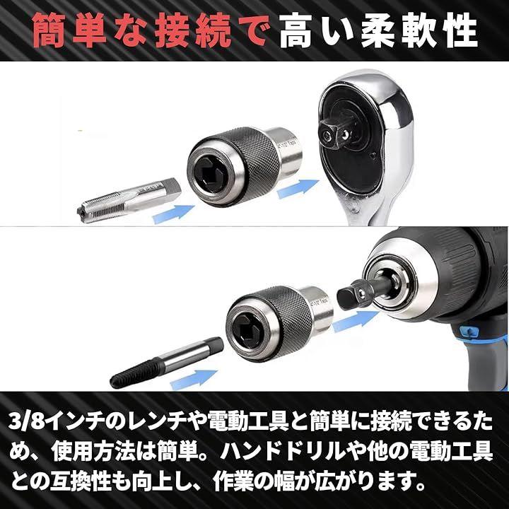 タップやリーマー、ネジ抽出器などさまざまなツールに対応可能で、既存のレンチや電動工具ともシームレスに接続できます。