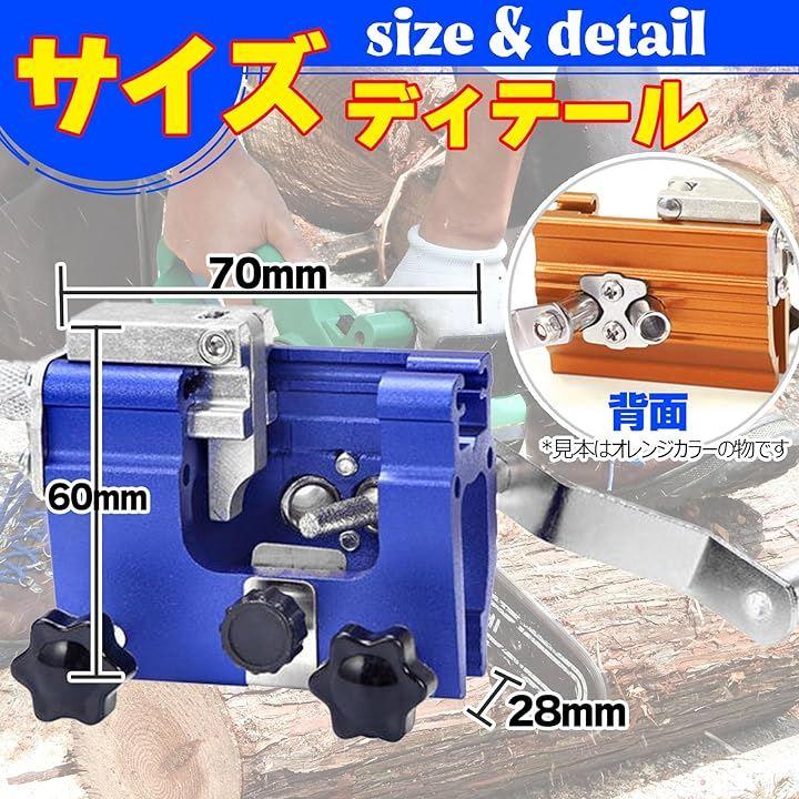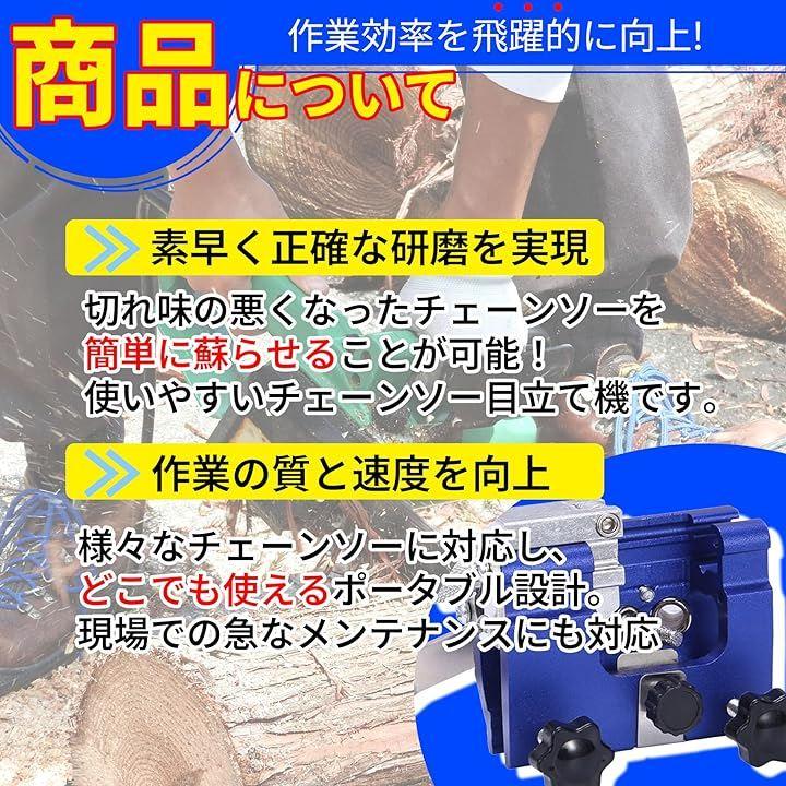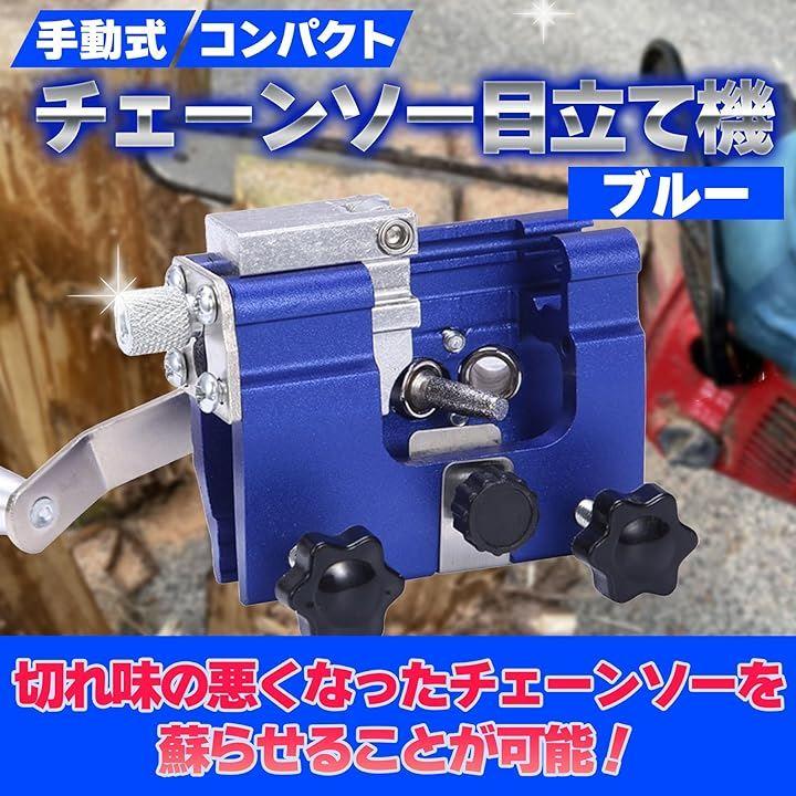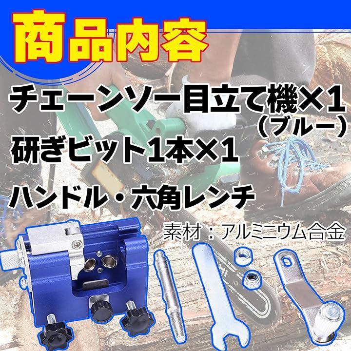 「セット内容/仕様」チェーンソー目立て機(ブルー)、研ぎビット1本 ・素材:アルミニウム合金「注意事項」ご使用の際は安全に考慮した上でご使用ください。