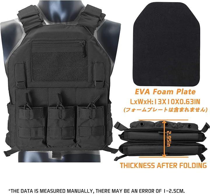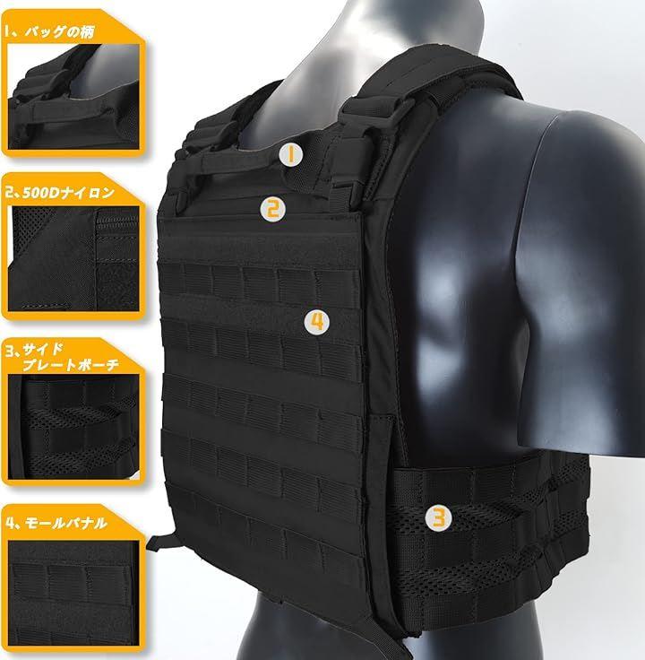 胸部プロテクター:タクティカルベストの前後に2個の取り外し可能な硬質EVA保護安全ガードがあります。