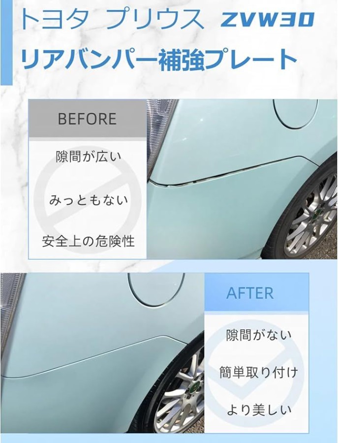 「ZVW30リアバンパーの隙間トラブルを解決」 トヨタ プリウス ZVW30 専用設計のリアバンパー補強プレートです。