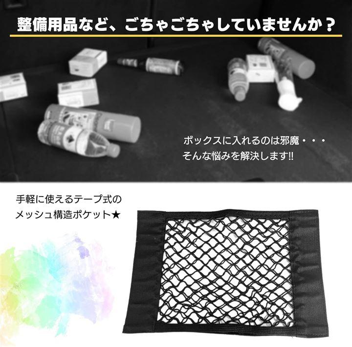 テープで簡単に取り付けられる収納ポケットは、車内の収納スペースを増やし、荷物の整理をスムーズに行える便利なアイテムです。