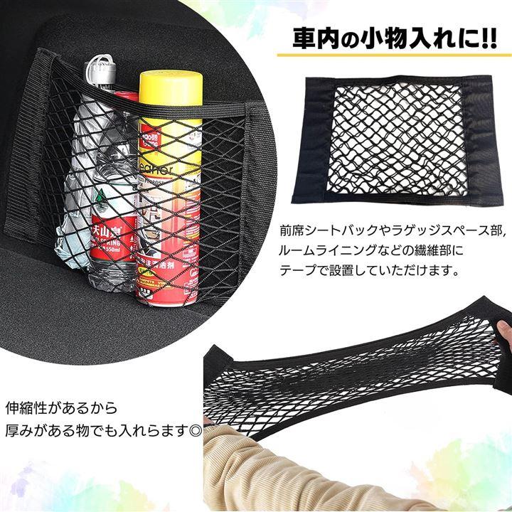 シートバックやラゲッジスペースに取り付けることで、小物をスッキリ収納でき、車内の快適性が向上します。