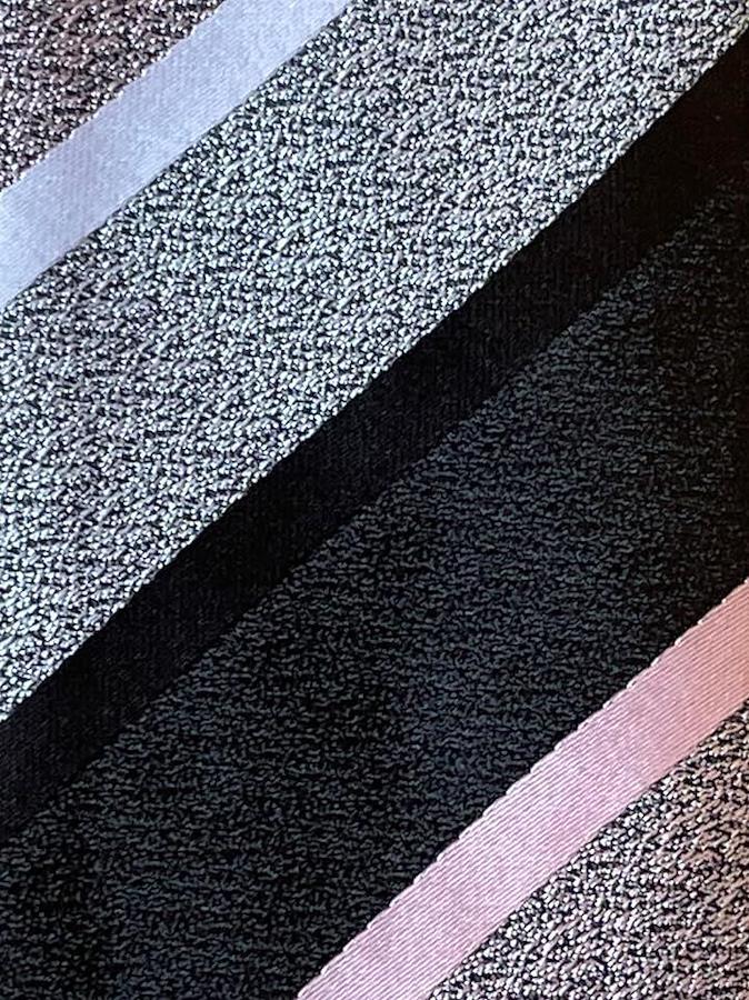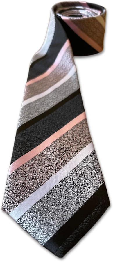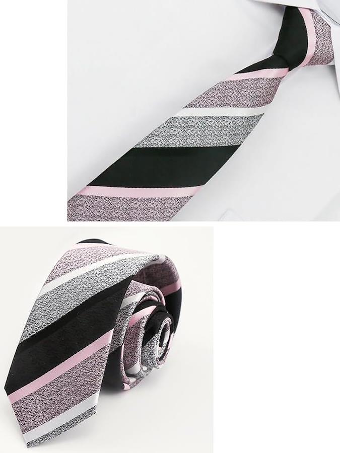 モノクロベースに淡いピンクのストライプ。