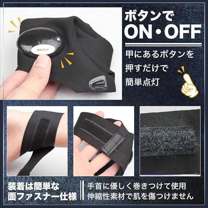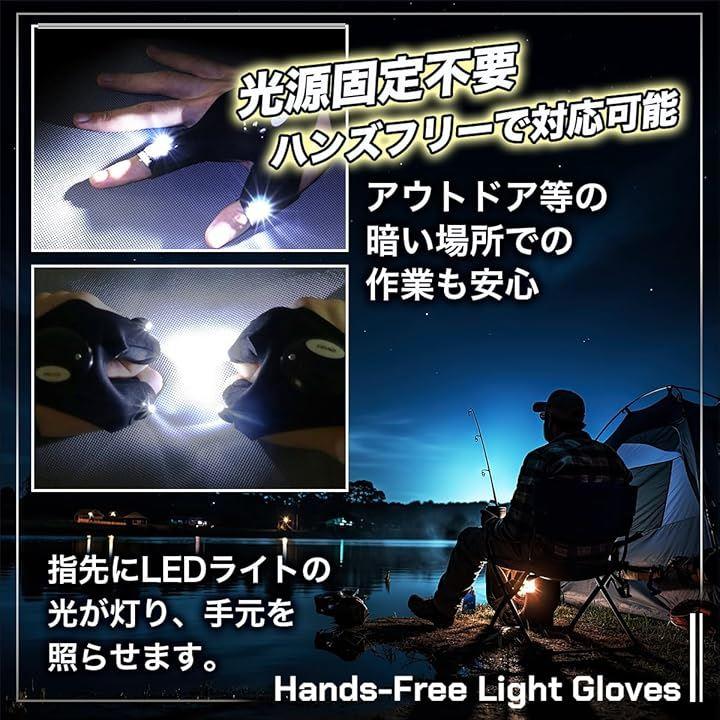 手元を明るく照らすハンズフリーLEDライトグローブ 夜釣りやキャンプ、DIY作業など、暗い場所での細かい作業に最適なLEDライト付きグローブ。