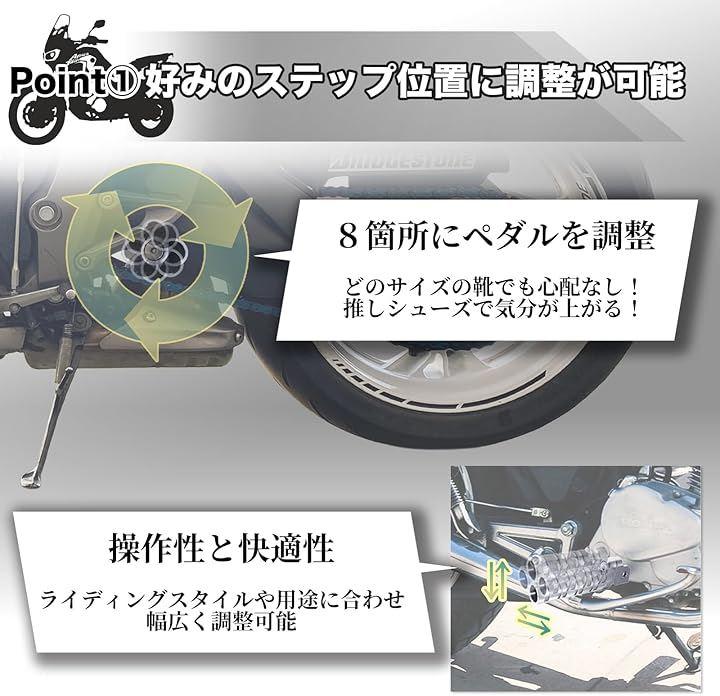 「耐久性x操作性。アルミステップ」こちらのバイクステップはお好みのステップ位置に調整が可能です。
