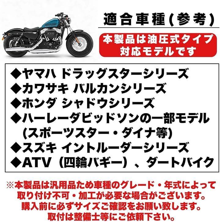 「適合車種(参考)」 ・ヤマハ ドラッグスター ・カワサキ バルカン ・ホンダ シャドウ 400 600 750 1100 ・スティード 400 600 VT600 ・マグナ 250 750 ・ハーレーダビッドソン ソフテイル、ダイナ、スポーツスター、ツーリング、 V-Rod ・スズキ イントルーダー ・ATV(四輪バギー)、ダートバイク、その他25mmハンドル径車両 *車種のグレード・年式によっては、加工が必要な場合や、取り付け出来ない場合がございますのでご購入前に必ずご確認をお願い致します。