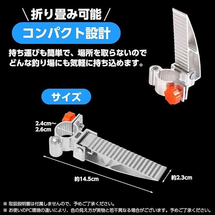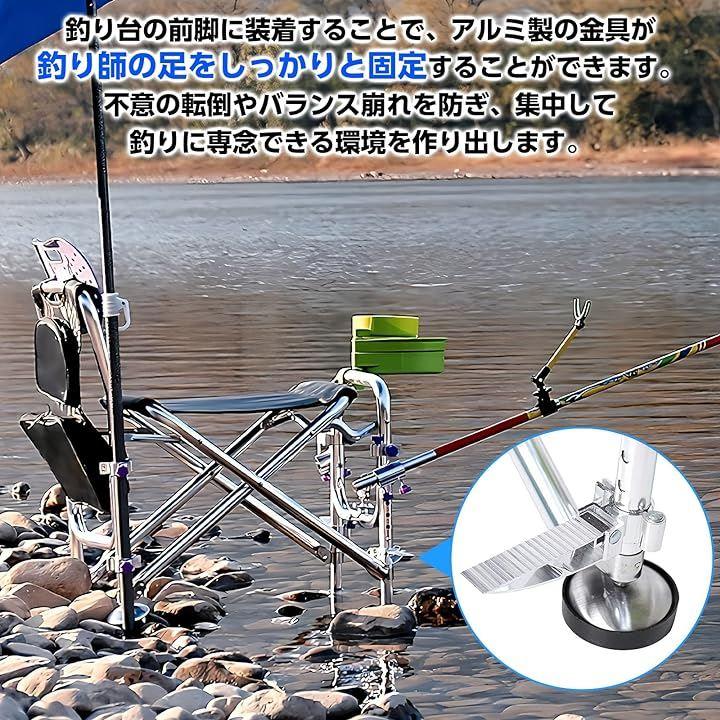 釣り台の前脚に装着することで、アルミ製の金具が釣り師の足をしっかりと固定することができます。