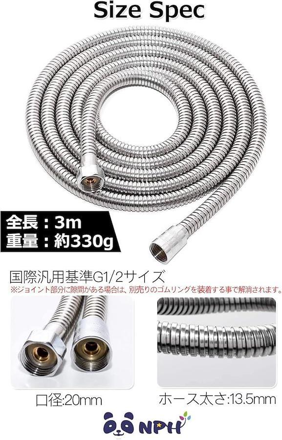 2「 シンプルで合わせやすい 」 「NPH」製のシャワーホースは、シンプルで合わせやすいメタル仕様の交換用シャワーホース3mです。