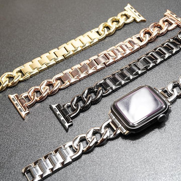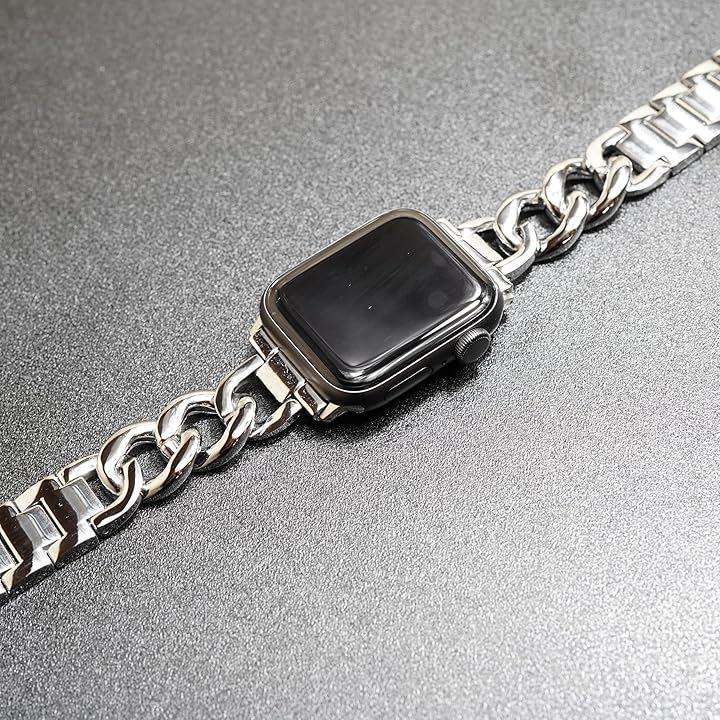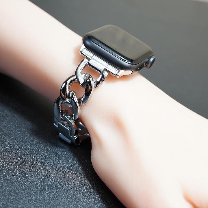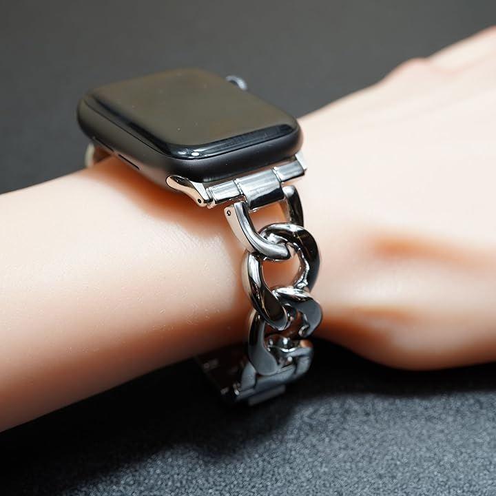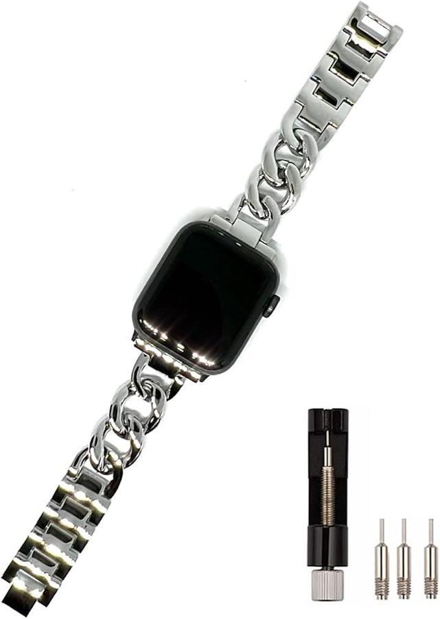 Compatible/Replacement Chain Band with Link Adjuster, Stylish Watch, Silver/Lightweight, Women's, Gift, Apple Watch Compatible, 44mm, 45mm, 46mm, 49mm
