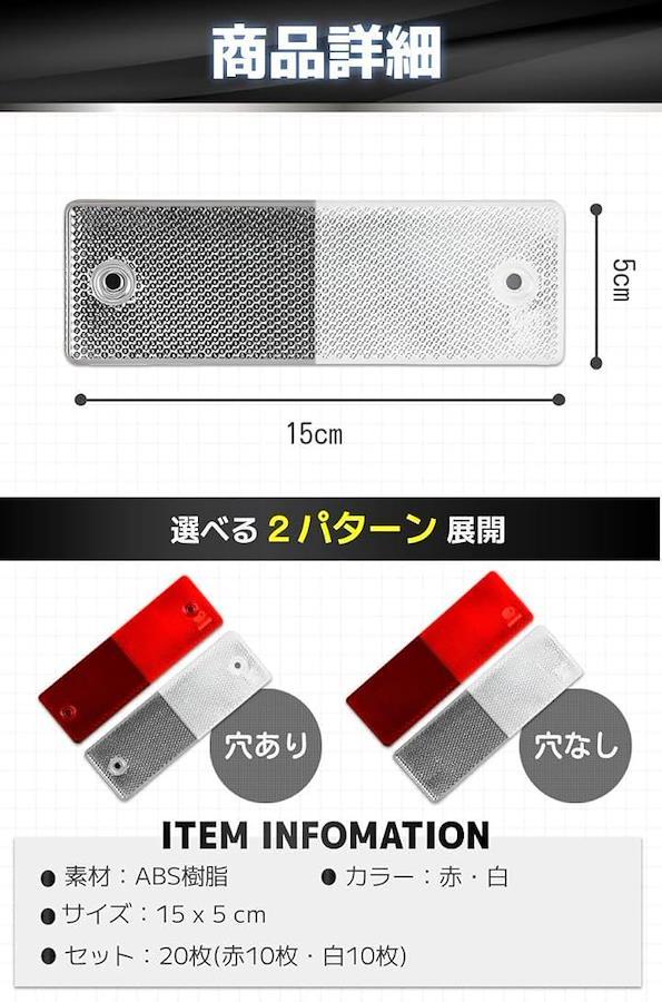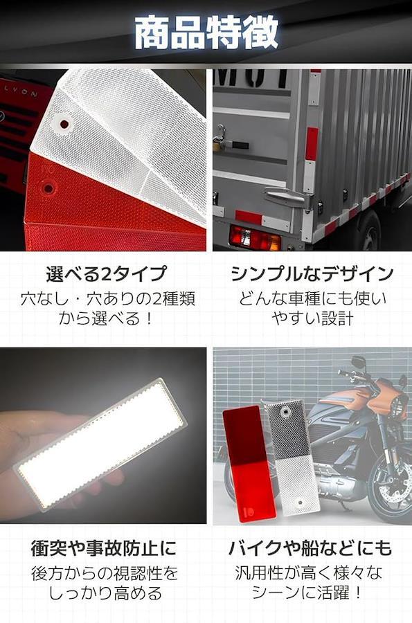 「商品特徴」(1)選べる2タイプ:穴なし・穴ありの2種類から選べる。/(2)シンプルなデザイン:どんな車種にも使いやすい設計/(3)衝突や事故防止に:後方からの視認性をしっかり高める/(4)バイクや船などにも:汎用性が高く様々なシーンに活躍。