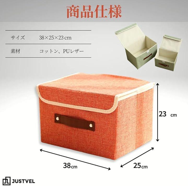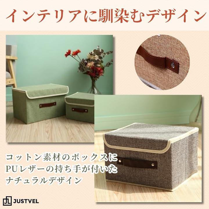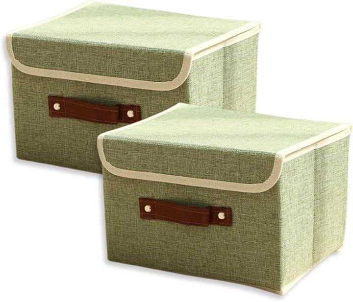 「おしゃれで機能的な折りたたみ収納ボックス」コットンリネン生地とPUレザーハンドルを組み合わせたスタイリッシュな2個セットの収納ボックスです。