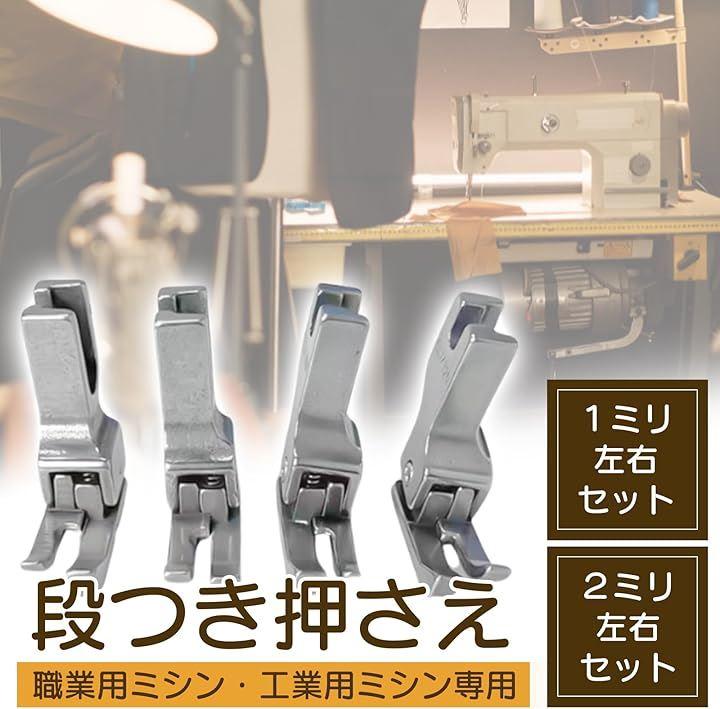 「仕様」バリエーション:1mm左右セット、2mm左右セット / 材質:高品質スチール製(金属) / セット内容:右段押え x1、左段押さえ x1 / 対応機種:ジューキ(JUKI)、ブラザー(brother)、蛇の目(ジャノメ)などのメーカーのミシンに使える汎用性のある商品です。