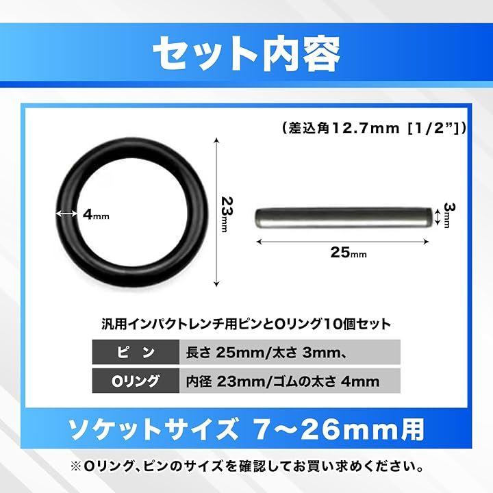 ソケットサイズ 7~26mm用(差込角12.7mm [1/2”])「サイズ」ピン:長さ 25mm:太さ 3mm、Oリング:内径 23mm、ゴムの太さ 4mm