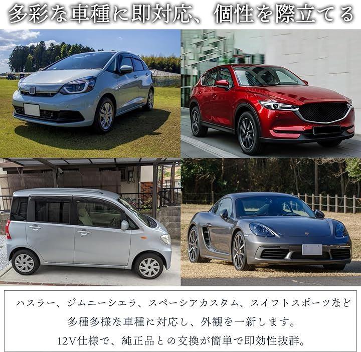 「汎用品で様々な車種に対応」車の外観をアップグレードし、ハスラー、ジムニーシエラ、スペーシアカスタム、スイフトスポーツなどの様々な車種に対応し個性を際立てます。