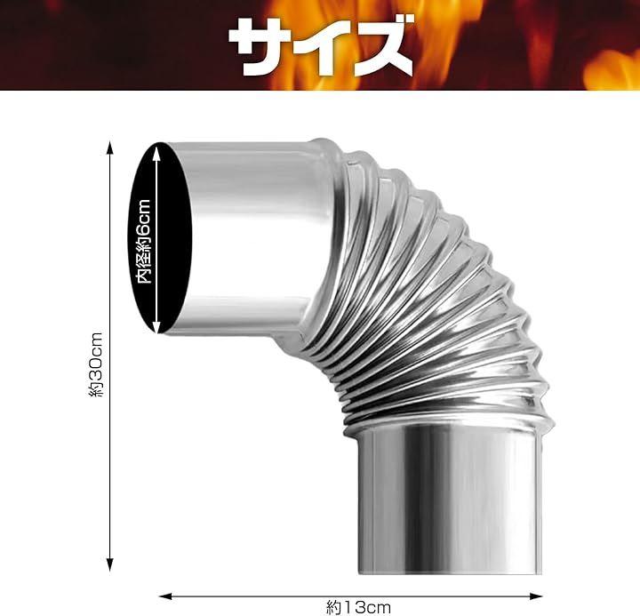 90度曲げパイプ:この薪ストーブ用の90度曲げパイプは、煙突の設置に最適です。