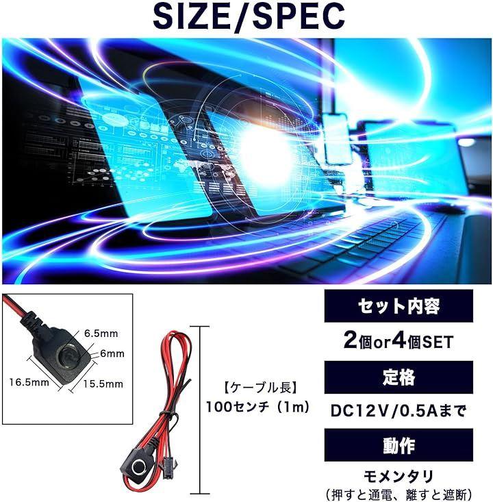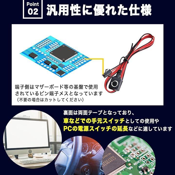 全長1m&スイッチ部分の裏には両面テープが貼られていますので、車などでの手元スイッチとしての使用やPCの電源スイッチの延長などに適しています。