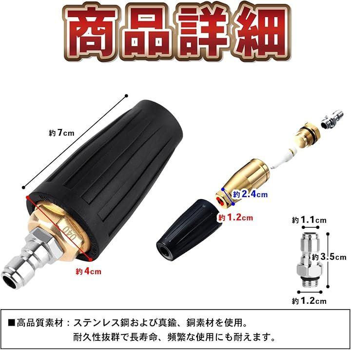 1/4インチクイックコネクターがほとんどのブランドの高圧洗浄機に対応。