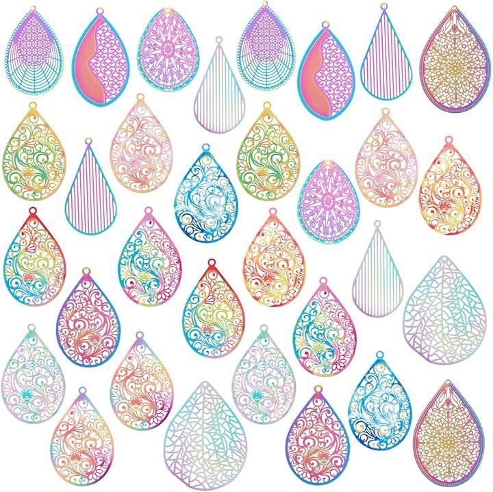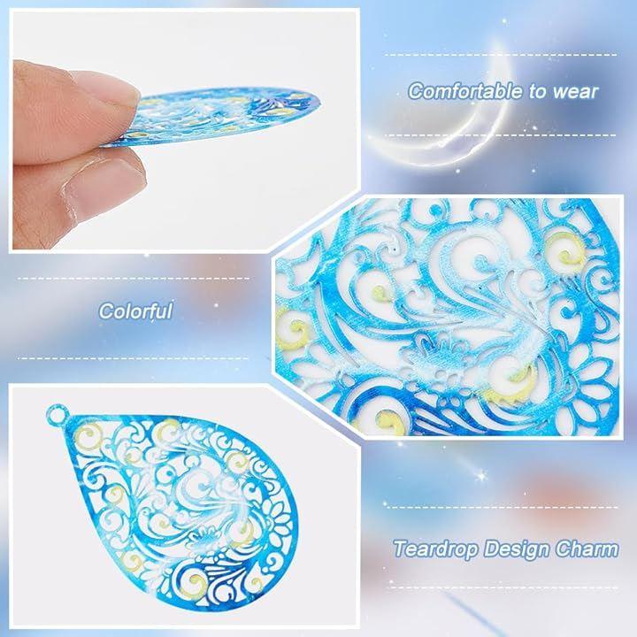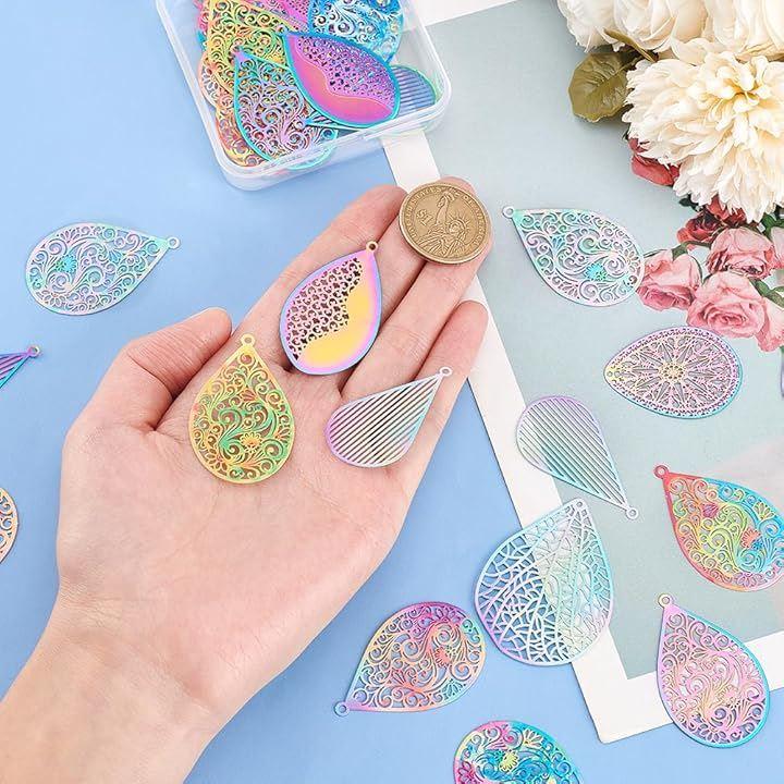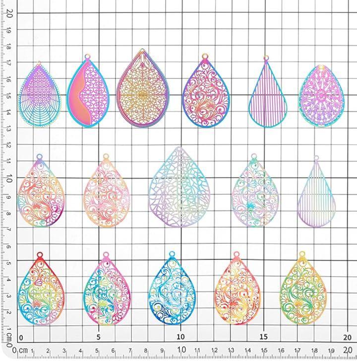 パッケージに含まれるもの:16スタイルのカラフルなフィリグリーペンダント32個、各スタイル2個、サイズ約1.5~2x0.9~1.4インチ(3.8~5x2.3~3.7cm)、ホールサイズ1~2mm。
