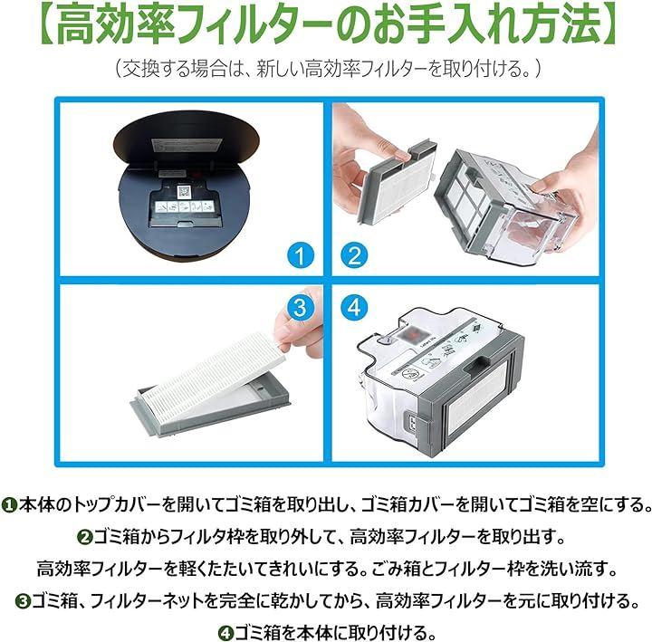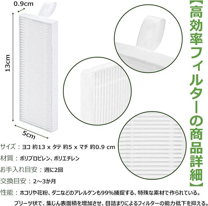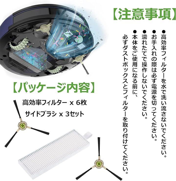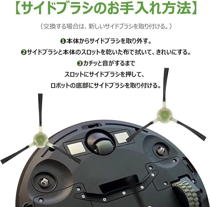 「交換目安」ロボット掃除機をいいパフォーマンスで稼働させるには、ブラシとフィルターを頻繁に掃除し、使用頻度に応じて2~3か月ごとに交換してください。