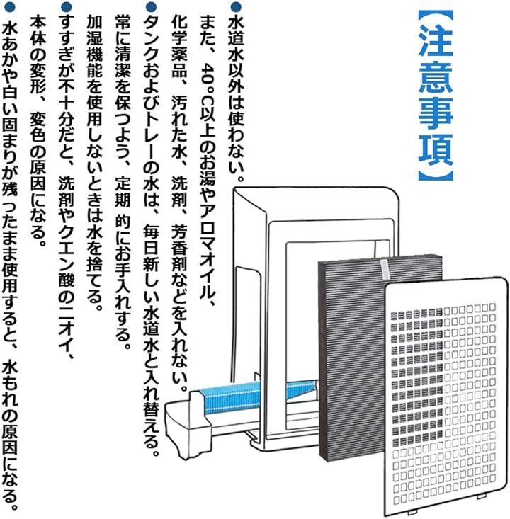 )「注意事項」初めてお使いになるときや、長期間保管後にお使いになるときなどは加湿フィルターに水が十分にしみ込むまで時間がかかるので、運転開始後しばらくは加湿能力が十分に発揮されない場合がある。