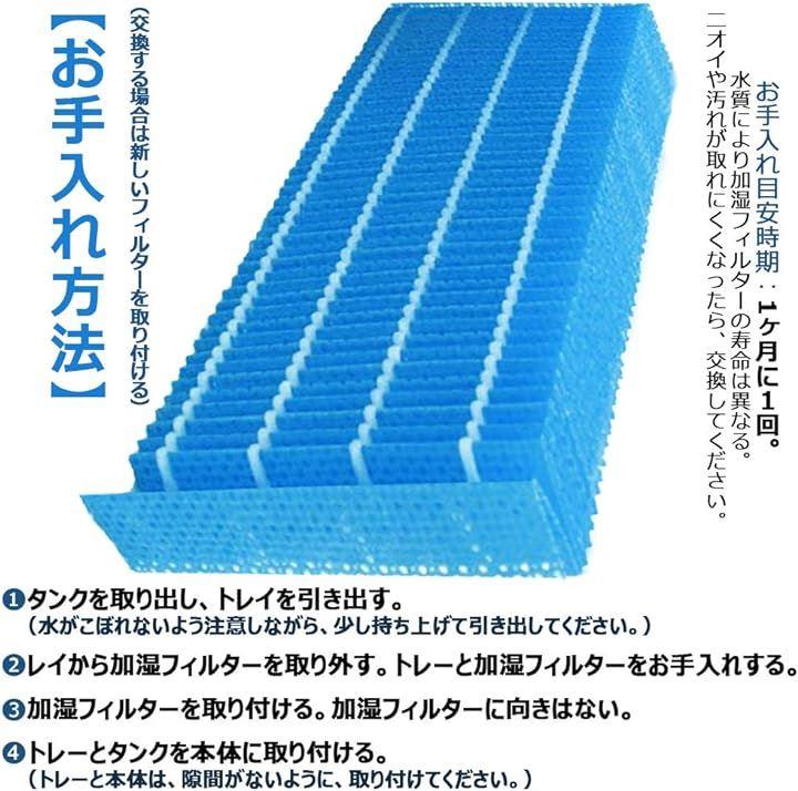「加湿フィルターのメンテナンス目安」手入れ目安時期:1ヶ月に1回(水質により加湿フィルターの寿命は異なる。