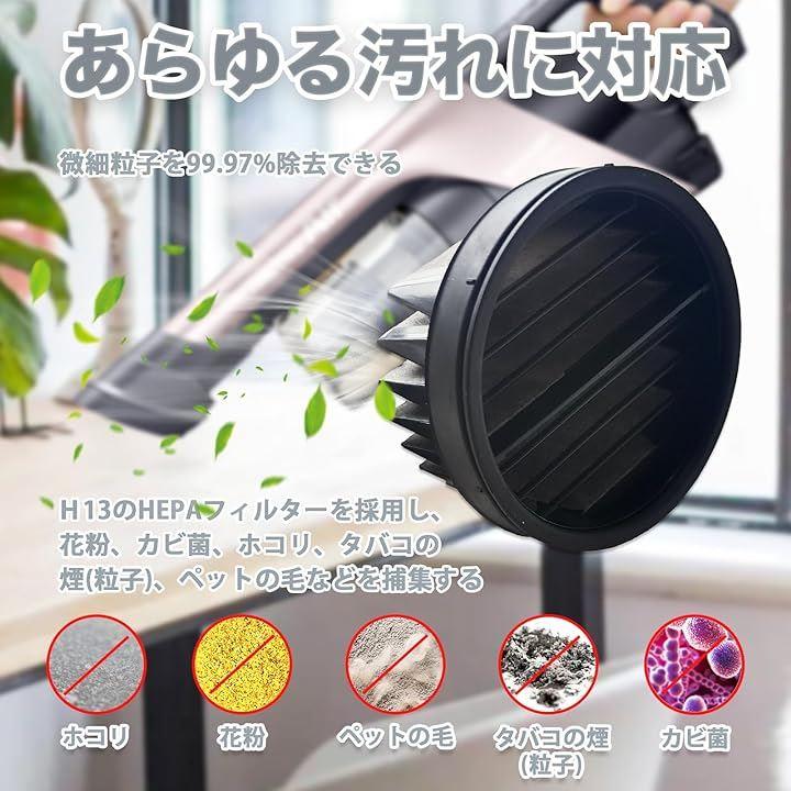 「H13の高効率フィルターを採用し」微細粒子を99.97%除去できるH13のHEPAフィルターを採用し、PM2.5、花粉、アレル物質(ダニのふん・死がい)、カビ菌、ホコリ・チリ、タバコの煙(粒子)、ペットの毛などを捕集することができます。