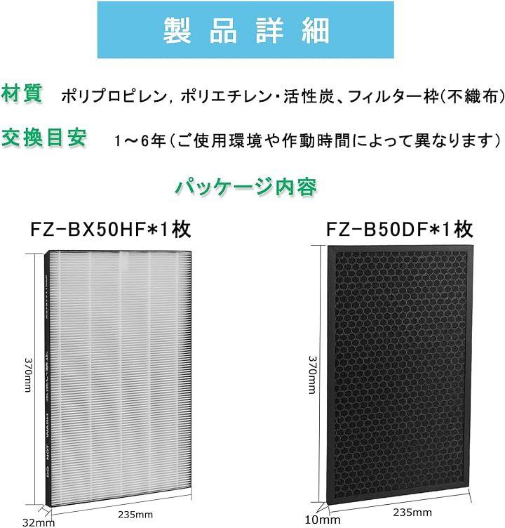 空気清浄機用フィルター型番 FZ-BX50HF、FZ-B50DF と交換できる集じんフィルター、脱臭フィルターです。