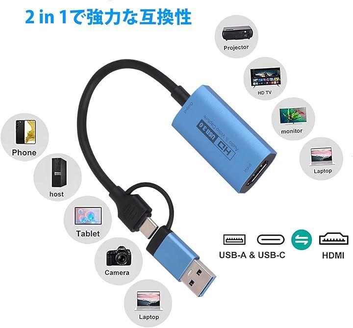 「HDMI - USB3.0/type c より強い互換性」この最新型hdmi キャプチャーボード to USB C & USB3.0 ビデオキャプチャデバイスはは、スマホ、ゲーム機、ビデオカメラ、ラップトップ、3DSなどほとんどのデバイスと接続してビデオ/音声をPCで表示したり、高画質の録画/ライブ配信(生放送)したりすることができます。