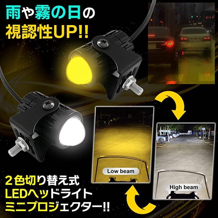 主にバイク用としてお使いいただけ、発光はホワイトとイエロー(アンバー)のデュアルカラーになります。