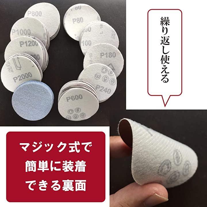 ・* サイズ:50/75/100/125/150mm(誤差:±2mm以内程度/手採寸)* 粒度 :#80 #100 #180 #240 #600 #800 #1000 #1200 #2000 #3000 の10種類 ( #3000)は、他とは、異なり灰色です * マジック式でサンダーへの装着が簡単です 繰り返し、ご使用いただけます