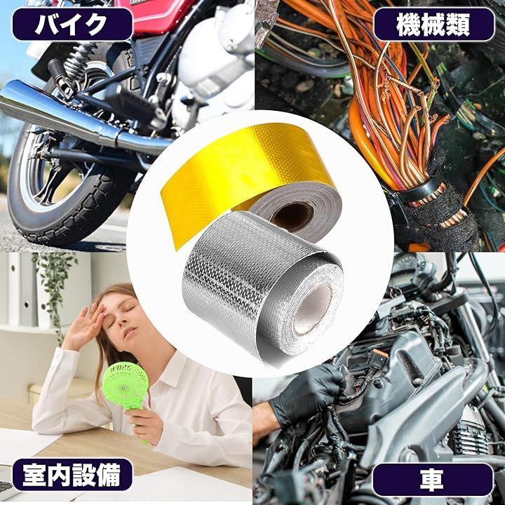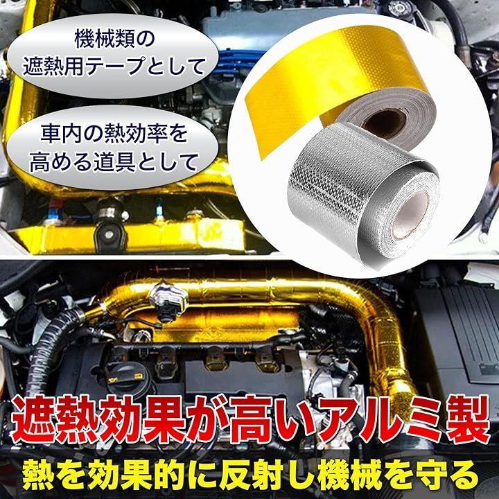 「高い耐熱性」MONOSTOREのゴールド耐熱テープ(粘着テープ)は、優れた耐熱性能を持ち、サーモバンテージとしてエンジンルームやマフラー周辺の過熱を効果的に防ぎます。