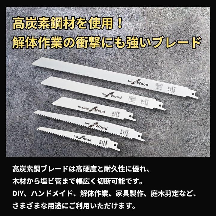 「耐久性と精密な切れ味」 高品質の高炭素鋼を使用したレシプロソーブレードは、抜群の硬度と耐久性を誇り、木材やパイプなどの硬質素材を滑らかに切断します。