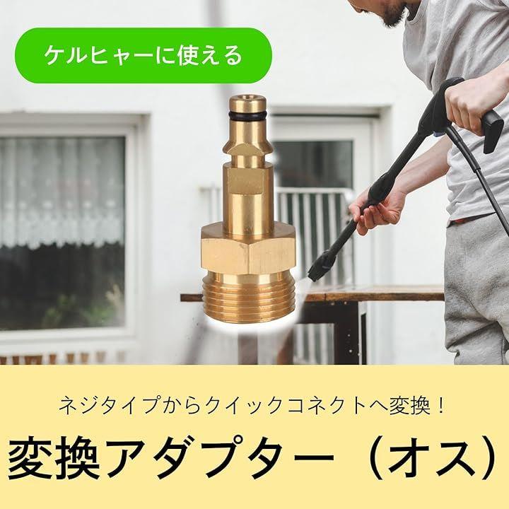「旧式ネジからクイックコネクトへ」ケルヒャーの旧ネジタイプ(オス)をクイックコネクト(オス)へ変換するアダプターです。