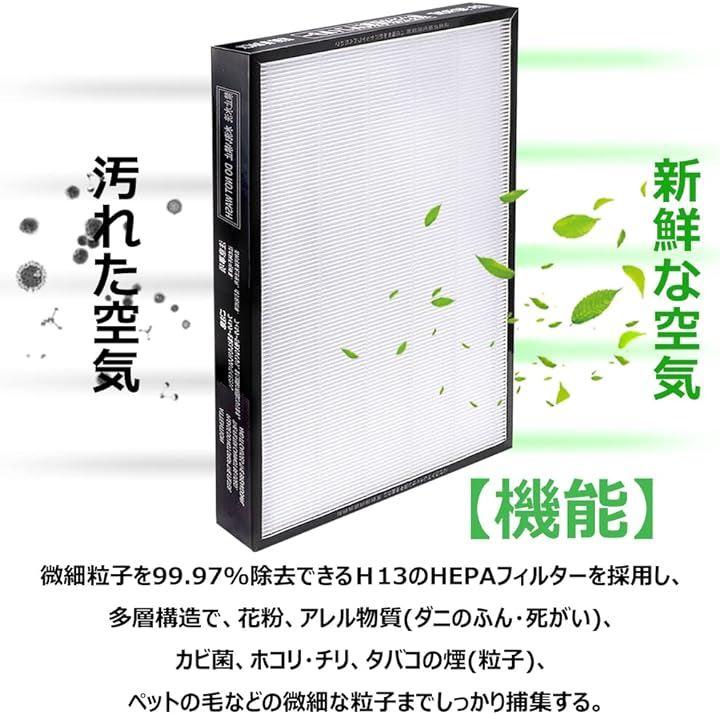 「機能」微細粒子を99.97%除去できるH13のHEPAフィルターを採用し、多層構造で、花粉、アレル物質(ダニのふん・死がい)、カビ菌、ホコリ・チリ、タバコの煙(粒子)、ペットの毛などの微細な粒子までしっかり捕集する。