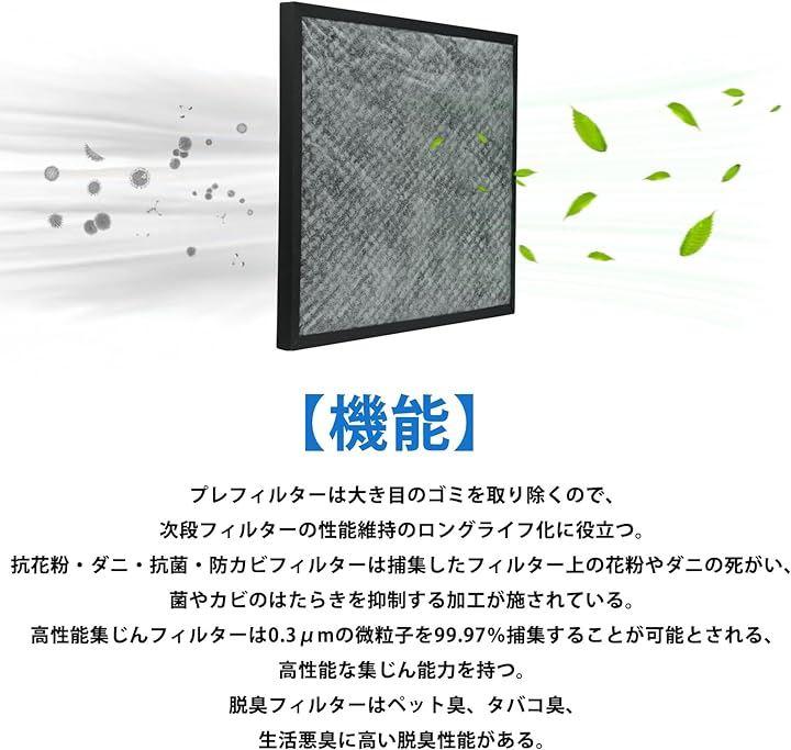 材質:活性炭、ポリプロピレン、ポリエステル、ビニロン。