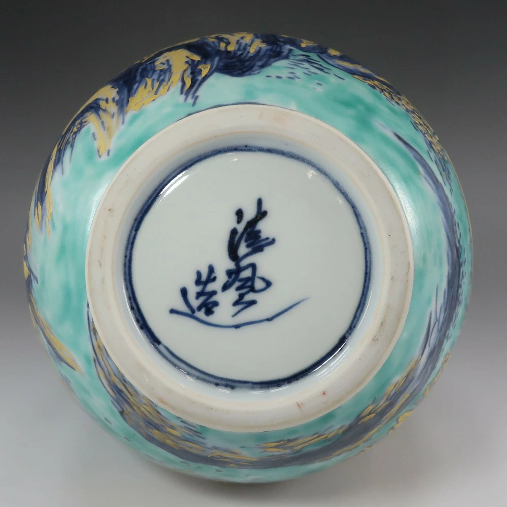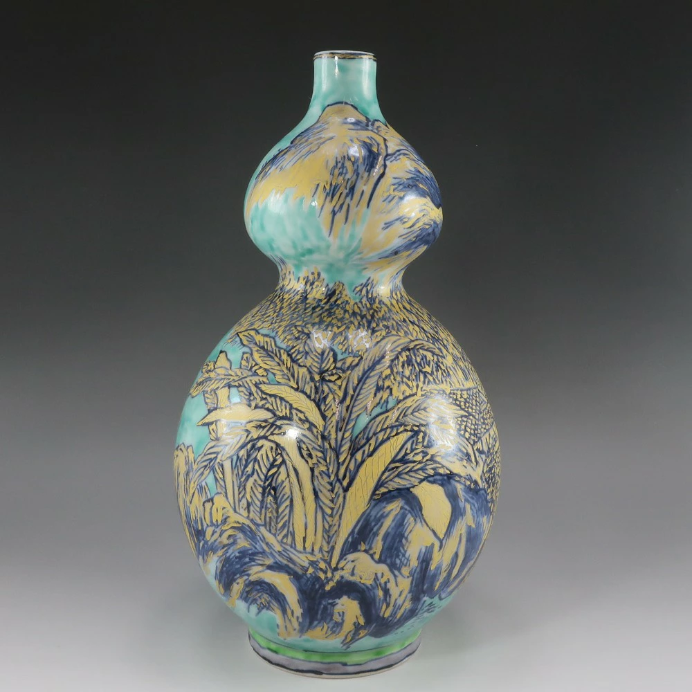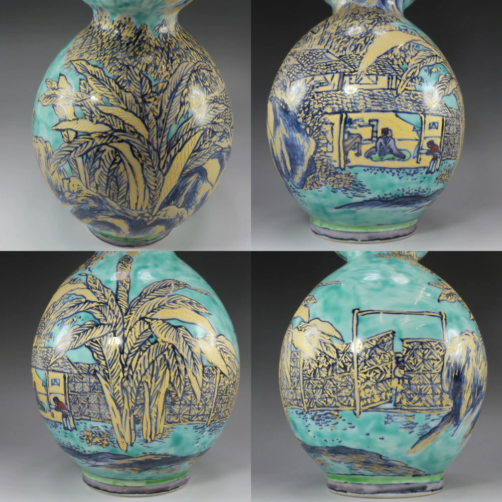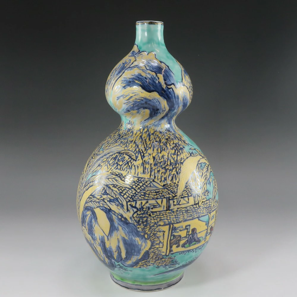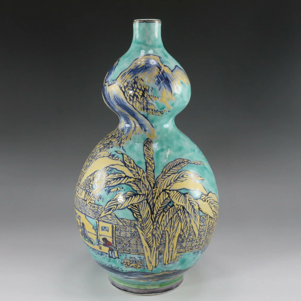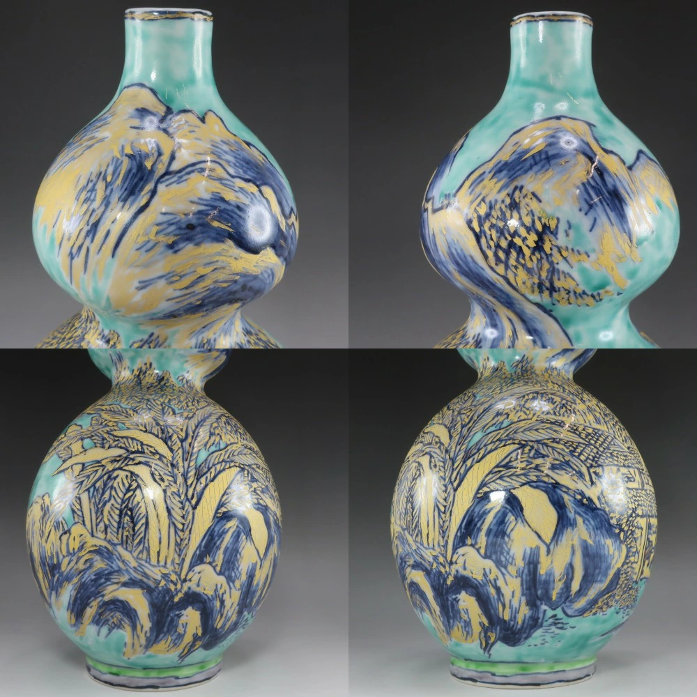 モデル名五代 清風与平 緑地金彩山水図瓢花瓶