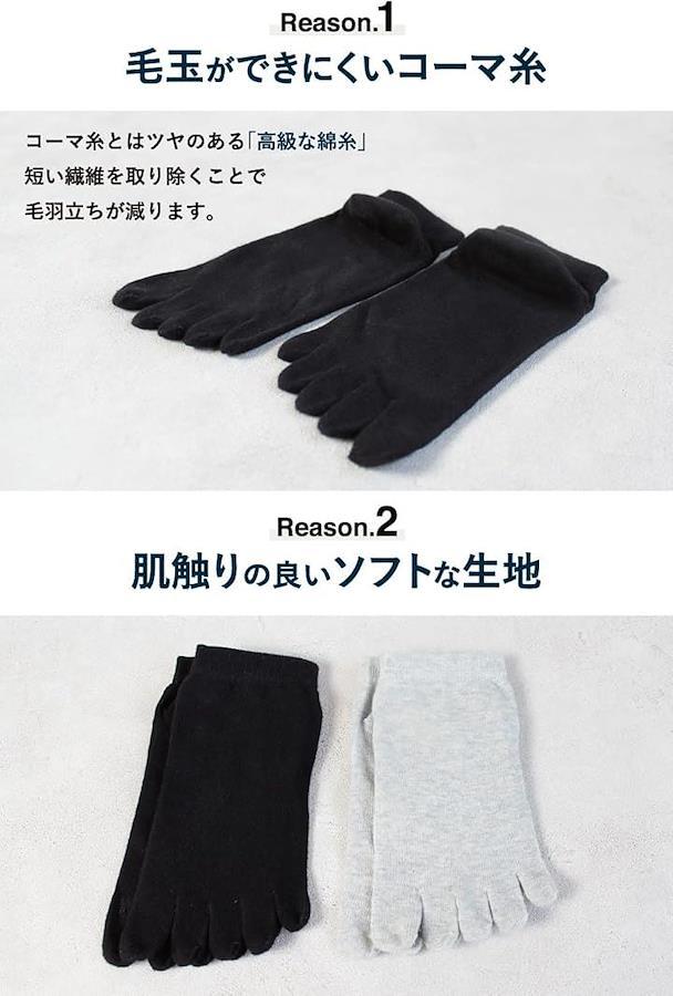 「毛玉が出来にくい五本指靴下」短い繊維を取り除いた上質な綿糸を使用していますので、毛羽立ちが少なく毛玉が出来にくいです。